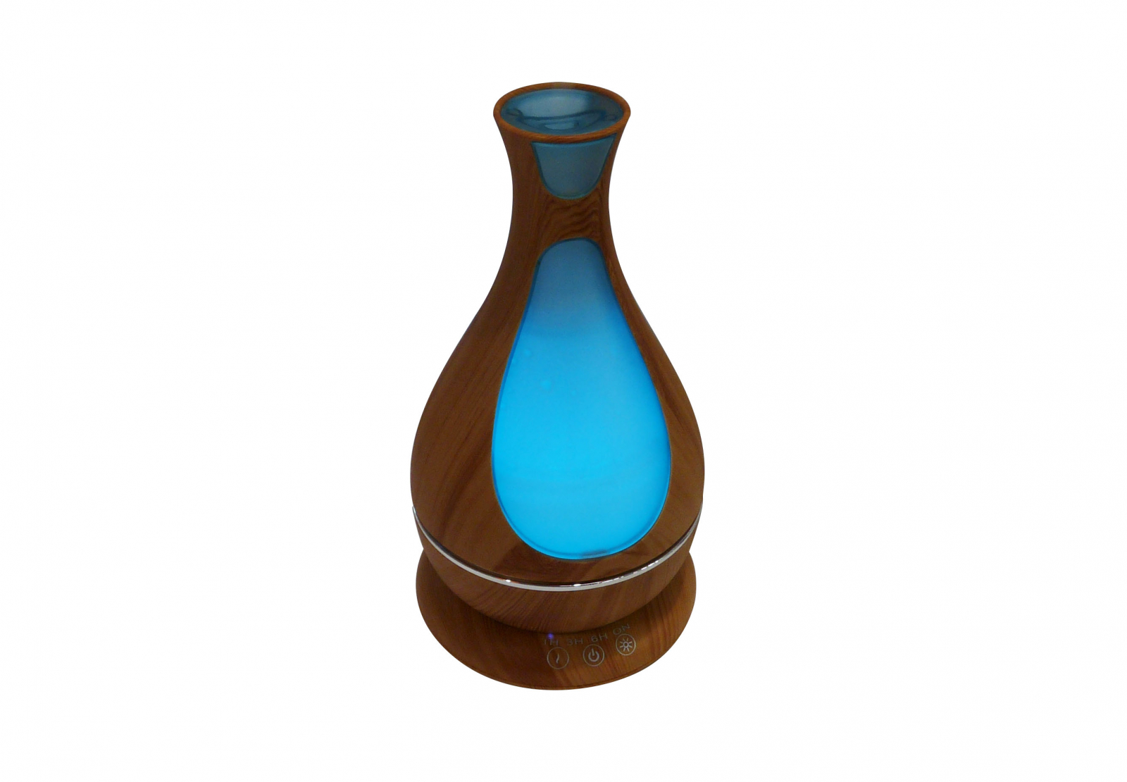 Cu un design elegant care imită lemnul, Difuzorul cu ultrasunete și temporizator pentru diferite moduri: 1 oră/3 ore/ 6 ore/ continuu, se oprește automat în momentul în care dispozitivul rămâne fără apă. Are o capacitate de 400 ml și pulverizează ușor fiind foarte silențios.